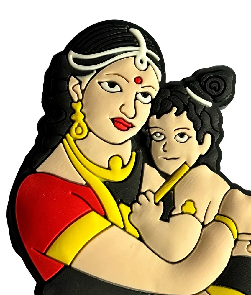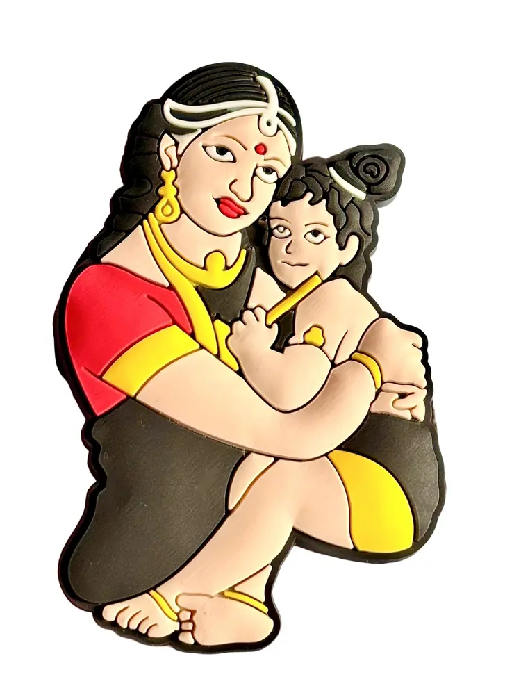 Celebrate the eternal bond of mother and child with this beautifully craftedYashoda Gopal Fridge Magnet. Featuring a vibrant, stylized depiction of Mother Yashoda lovingly holding young Lord Krishna, this magnet adds a divine charm to any space. Made from high-quality, durable rubber material, it adheres firmly to metallic surfaces like refrigerators, lockers, and cabinets.